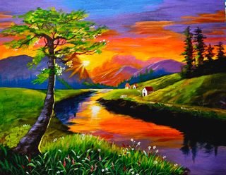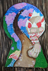 Juxtaposition of lifeless woodland against a brilliant eruption of lively colour in Acrylic (2019)